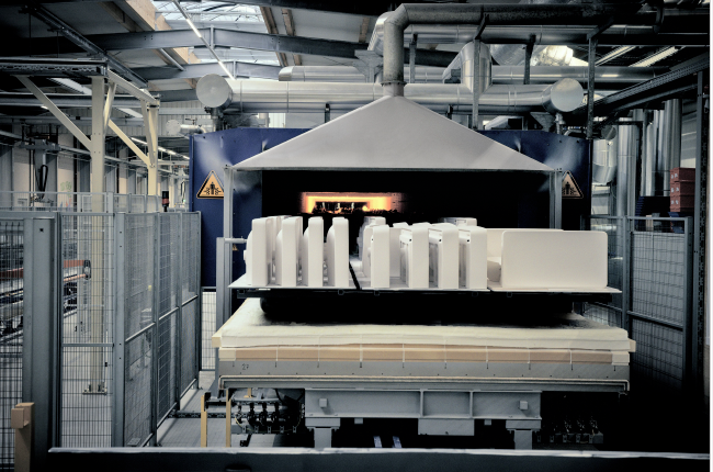 Im Zentrum der klimaneutralen Produktion steht der erste elektrische Tunnelofen für Sanitärkeramik, der seit 2023 im Vollbetrieb läuft. Er wird ausschließlich mit Photovoltaikstrom aus eigener Erzeugung und zertifiziertem Ökostrom betrieben.