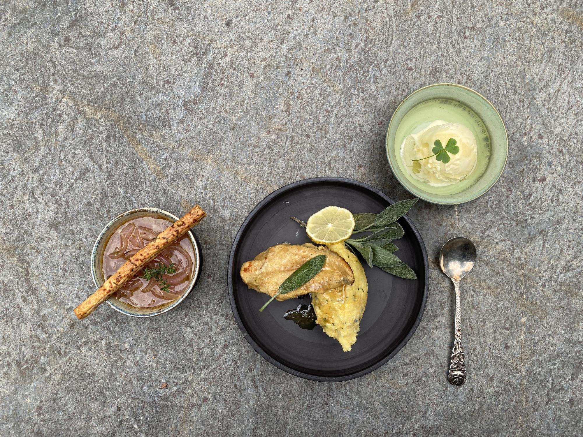 Hauptspeise: Salbeihuhn mit Zitrone und Kräuterpolenta