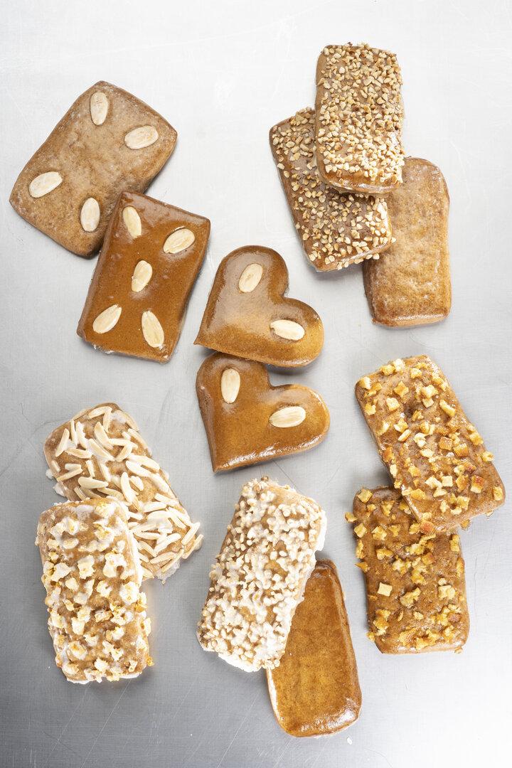 Honiglebkuchenteig mit langer Teigführung hergestellt. Die langen Reifezeiten wirken sich positiv auf die Frischhaltung und Verträglichkeit aus.